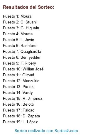 Lista de participantes: Quagliarella, G. Higuain, Manzukic, Giroud, Ben yedder, Morata, D. Zapata, Belotti, Piatek, Falcao, L. López, C. Stuani, Willian José, R. Jiménez, Vardy, Rashford, L. Jovic, F. Ribery, Moura.