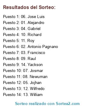 Resultados del sorteo: