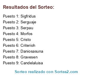 Lista de participantes: Cristo, Criterioh, Daniosasuna, Candelaluisa, Gravesen, Morfos, Serguaje, Serpau, Sigfridus.