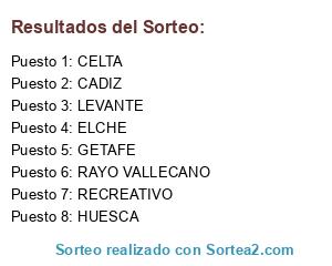 Lista de participantes: CELTA, CADIZ, LEVANTE, GETAFE, RAYO VALLECANO, HUESCA, ELCHE, RECREATIVO.