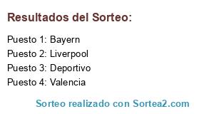 Lista de participantes: Deportivo, Bayern, Liverpool, Valencia.