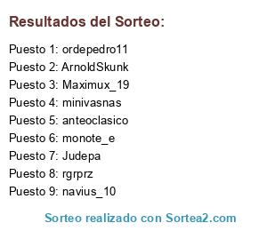 Lista de participantes: anteoclasico, ArnoldSkunk, Judepa, Maximux_19, minivasnas, monote_e, navius_10, ordepedro11, rgrprz.