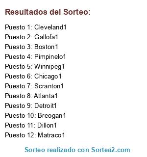 Lista de participantes: Gallofa1 (250), Winnipeg1 (200), Cleveland1 (150), Chicago1 (100), Breogan1 (90), Boston1 (80), Dillon1 (70), Pimpinelo1 (60), Detroit1 (50), Atlanta1 (40), Matraco1 (30), Scranton1 (10).