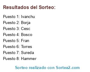 Lista de participantes: Borja, Bosco, Fran, Cesc, Sureda, Torres, Ivanchu, Hammer.