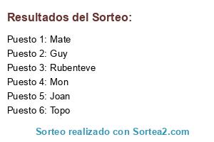 Lista de participantes: Mon, Joan, Guy, Mate, Rubenteve, Topo.