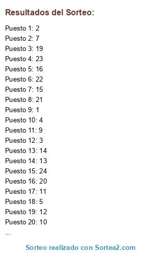 Resultados del sorteo: