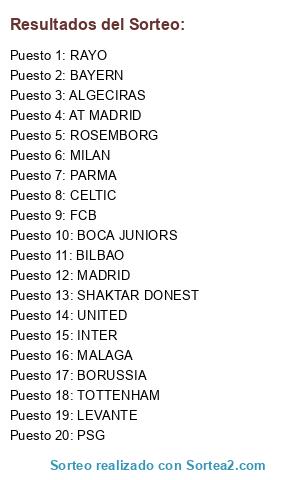Resultados del sorteo: