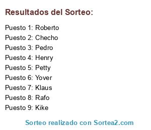 Lista de participantes: Kike, Henry, Rafo, Roberto, Pedro, Klaus, Yover, Petty, Checho.