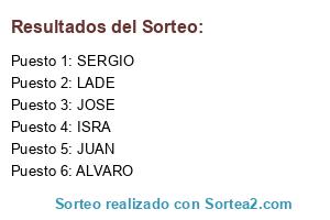 Lista de participantes: ALVARO, JOSE, JUAN, ISRA, LADE, SERGIO.