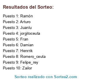 Lista de participantes: Juanlu, jorgitoceuta, Romero_ceuta, Henrrik, Felipe_rey, Damian, Arturo, Fran, Zailor, Ramón.