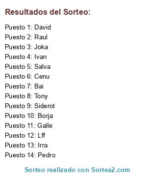 Lista de participantes: Irra, Ivan, Raul, Borja, Tony, Lff, David, Joka, Bai, Galle, Cenu, Pedro, Siderot, Salva.