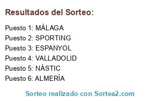Lista de participantes: VALLADOLID, ESPANYOL, ALMERÍA, NÀSTIC, SPORTING, MÁLAGA.