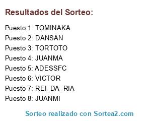 Lista de participantes: TOMINAKA, JUANMA, VICTOR, JUANMI, ADESSFC, TORTOTO, DANSAN, REI_DA_RIA.