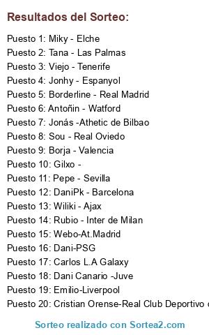 Lista de participantes: Miky - Elche, Borderline - Real Madrid, Jonhy - Espanyol, Tana - Las Palmas, Viejo - Tenerife, Gilxo -, Rubio - Inter de Milan, DaniPk - Barcelona, Dani-PSG, Sou - Real Oviedo, Carlos L.A Galaxy, Jonás -Athetic de Bilbao, Dani Canario -Juve, Emilio-Liverpool, Pepe - Sevilla, Antoñin - Watford, Borja - Valencia, Cristian Orense-Real Club Deportivo de la Coruña, Wiliki - Ajax, Webo-At.Madrid.