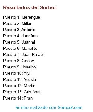 Resultados del sorteo: