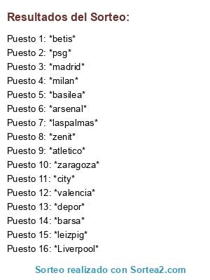 Lista de participantes: *laspalmas*, *arsenal*, *depor*, *valencia*, *madrid*, *Liverpool*, *psg*, *zaragoza*, *betis*, *basilea*, *zenit*, *milan*, *leizpig*, *barsa*, *atletico*, *city*.