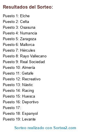Lista de participantes: Getafe, Rayo Vallecano, Espanyol, Levante, Nàstic, Huesca, Elche, Almería, Recreativo, Celta, Racing, Osasuna, Zaragoza, Numancia, Mallorca, Hércules, Deportivo, Real Sociedad, .