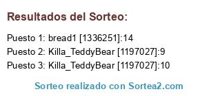 Lista de participantes: Daisy3 [730750]:3, Daisy3 [730750]:2, Daisy3 [730750]:1, Killa_TeddyBear [1197027]:23, Killa_TeddyBear [1197027]:22, Killa_TeddyBear [1197027]:21, Killa_TeddyBear [1197027]:20, Killa_TeddyBear [1197027]:19, Killa_TeddyBear [1197027]:18, Killa_TeddyBear [1197027]:17, Killa_TeddyBear [1197027]:16, Killa_TeddyBear [1197027]:15, Killa_TeddyBear [1197027]:14, Killa_TeddyBear [1197027]:13, Killa_TeddyBear [1197027]:12, Killa_TeddyBear [1197027]:11, Killa_TeddyBear [1197027]:10, Killa_TeddyBear [1197027]:9, Killa_TeddyBear [1197027]:8, Killa_TeddyBear [1197027]:7, Killa_TeddyBear [1197027]:6, Killa_TeddyBear [1197027]:5, Killa_TeddyBear [1197027]:4, Killa_TeddyBear [1197027]:3, Killa_TeddyBear [1197027]:2, Killa_TeddyBear [1197027]:1, BigEd [1290622]:3, BigEd [1290622]:2, BigEd [1290622]:1, Alice_S [1312853]:10, Alice_S [1312853]:9, Alice_S [1312853]:8, Alice_S [1312853]:7, Alice_S [1312853]:6, Alice_S [1312853]:5, Alice_S [1312853]:4, Alice_S [1312853]:3, Alice_S [1312853]:2, Alice_S [1312853]:1, Sun_Ce [1181209]:1, Freyja [1331448]:2, Freyja [1331448]:1, bread1 [1336251]:15, bread1 [1336251]:14, bread1 [1336251]:13, bread1 [1336251]:12, bread1 [1336251]:11, bread1 [1336251]:10, bread1 [1336251]:9, bread1 [1336251]:8, bread1 [1336251]:7, bread1 [1336251]:6, bread1 [1336251]:5, bread1 [1336251]:4, bread1 [1336251]:3, bread1 [1336251]:2, bread1 [1336251]:1.