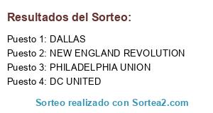 Lista de participantes: NEW ENGLAND REVOLUTION, PHILADELPHIA UNION, DC UNITED, DALLAS.