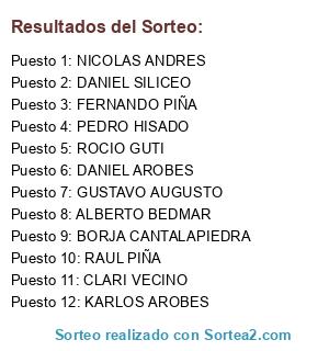 Resultados del sorteo: