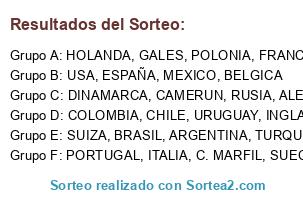 Lista de participantes: ESPAÑA, ALEMANIA, ITALIA, INGLATERRA, FRANCIA, BELGICA, HOLANDA, PORTUGAL, BRASIL, ARGENTINA, COLOMBIA, URUGUAY, CHILE, C. MARFIL, DINAMARCA, GALES, MEXICO, USA, RUSIA, SUECIA, TURQUIA, SUIZA, POLONIA, CAMERUN.