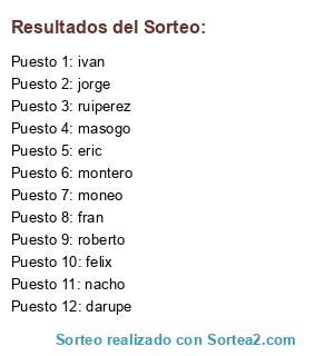 Lista de participantes: nacho, moneo, roberto, eric, montero, fran, ivan, jorge, masogo, ruiperez, darupe, felix.