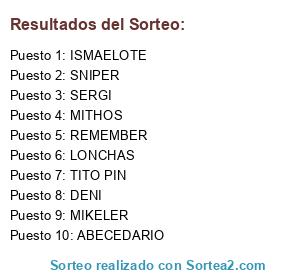 Lista de participantes: ISMAELOTE, REMEMBER, ABECEDARIO, SNIPER, MITHOS, LONCHAS, DENI, MIKELER, TITO PIN, SERGI.