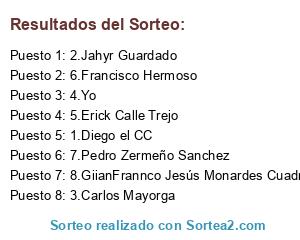 Lista de participantes: 1.Diego el CC, 2.Jahyr Guardado, 3.Carlos Mayorga, 4.Yo, 5.Erick Calle Trejo, 6.Francisco Hermoso, 7.Pedro Zermeño Sanchez, 8.GiianFrannco Jesús Monardes Cuadros.