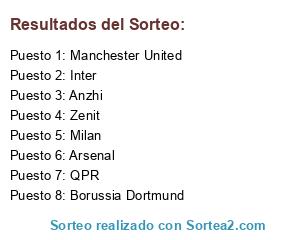 Lista de participantes: QPR, Manchester United, Milan, Arsenal, Zenit, Borussia Dortmund, Inter, Anzhi.