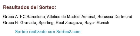 Lista de participantes: Arsenal, Villareal, Tottenham, Munich, Zaragoza, PSG, Manchester, Atleti.