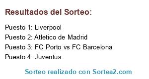 Lista de participantes: Liverpool, Juventus, Atletico de Madrid, FC Porto vs FC Barcelona.