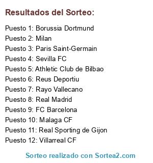 Lista de participantes: Manchester United, Malaga, PSG, City.
