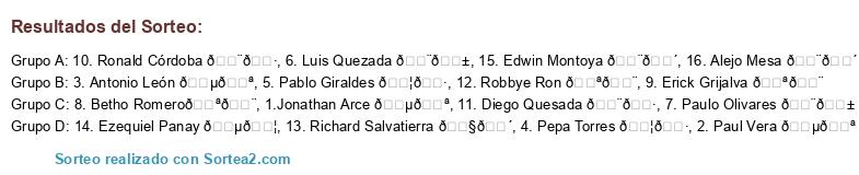 Lista de participantes: 1.Jonathan Arce 🇵🇪, 2. Paul Vera 🇵🇪, 3. Antonio León 🇵🇪, 4. Pepa Torres 🇦🇷, 5. Pablo Giraldes 🇦🇷, 6. Luis Quezada 🇨🇱, 7. Paulo Olivares 🇨🇱, 8. Betho Romero🇪🇨, 9. Erick Grijalva 🇪🇨, 10. Ronald Córdoba 🇨🇷, 11. Diego Quesada 🇨🇷, 12. Robbye Ron 🇪🇨, 13. Richard Salvatierra 🇧🇴, 14. Ezequiel Panay 🇵🇦, 15. Edwin Montoya 🇨🇴, 16. Alejo Mesa 🇨🇴.