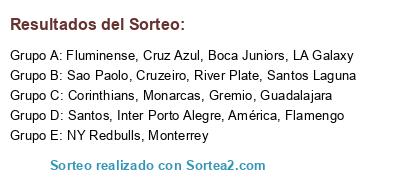 Lista de participantes: Boca Juniors, River Plate, LA Galaxy, NY Redbulls, América, Monterrey, Cruz Azul, Guadalajara, Santos Laguna, Monarcas, Fluminense, Flamengo, Cruzeiro, Gremio, Sao Paolo, Inter Porto Alegre, Santos, Corinthians.