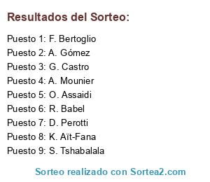Lista de participantes: S. Tshabalala, Y. Mollo, S. Sinclair, F. Bertoglio, C. Atsu, Cristian Tello, A. Oxlade-Chamberlain, Pizzi, K. Aït-Fana, D. Boerrigter, J. Pitroipa, R. Babel, J. Utaka, N. Chadli, A. Griezmann, Emerson, M. Rodríguez, E. Giaccherini, O. Assaidi, D. Perotti, Hélder Barbosa, A. Mounier, D. Mertens, G. Castro, Varela, A. Gómez.
