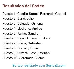 Lista de participantes: Bairó, Julio, Braga, Sebastián, Castillo Sorani, Fernando Gabriel, Coronado, Víctor, Delgado, Gimena, Gomez, Lucas, Jaime, Sandra, Lopez Chaya, Emiliano, Medrano, Andrés, Olivera, José Esteban.