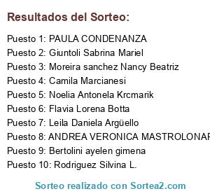 - Puesto 2: Giuntoli Sabrina Mariel