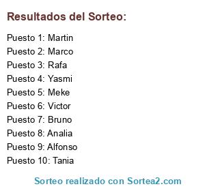 Lista de participantes: Tania, Analia, Bruno, Marco, Yasmi, Victor, Meke, Martin, Alfonso, Rafa.