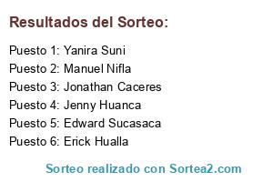 Lista de participantes: Edward Sucasaca, Jenny Huanca, Erick Hualla, Jonathan Caceres, Manuel Nifla, Yanira Suni.