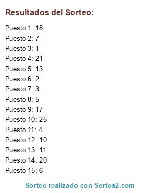 Lista de participantes: 1, 2, 3, 4, 5, 6, 7, 8, 9, 10, 11, 12, 13, 14, 15, 16, 17, 18, 19, 20, 21, 22, 23, 24, 25.