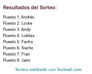 Lista de participantes: Andrés, Andy, Facho, Fran, Jairo, Locke, Lukitas, Nacho.