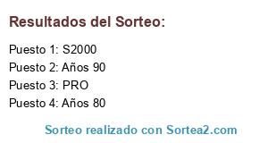 Lista de participantes: Años 80, Años 90, S2000, PRO.