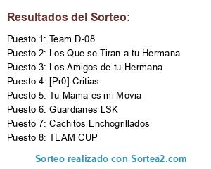Lista de participantes: Tu Mama es mi Movia, Guardianes LSK, Los Que se Tiran a tu Hermana, [Pr0]-Timaus.
