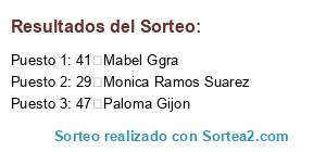 Lista de participantes: 1 Jorge Fernandez, 2 Veronica Gomez, 3 Sandra Sabariego, 4 Josefa Galvez Lanzas, 5 Mini Torres, 6 Ana Bertol, 7 Gabriel Cabrera Rueda, 8 Ainhoa Bernal Rodriguez, 9 Joan Galvez Lanzas, 10 Javier Fernandez Sanchez, 11 Jennifer Bonilla Pizarro, 12 Mara Vaño, 13 Veronica Bataller Carrascal, 14 Julia Lanzas Orejuela, 15 Anyka Sanchez Mnz, 16 Vanessa Bataller Carrascal, 17 Juan Pajarito Torres Lopez, 18 Macarena Infantes, 19 Noelia Olmo, 20 Noelia Novo Agullo, 21 Ainodea Manualidades, 22 Mary Lopez, 23 Maria Jose Saez Fernandez, 24 Felisa Martinez Castellano, 25 Vanesa Galvez Moreira, 26 Moli Val, 27 Lauriithaa Otero, 28 Noli Quinteiro, 29 Monica Ramos Suarez, 30 Ana Belen Garcia L, 31 Chaima Salek Azuz, 32 M Carmen Santiago, 33 Josefina Yebenes, 34 Eva Lopez, 35 Rafael Arrebola, 36 Criss Tina, 37 Candi Lopez, 38 Monica Fernandez Alonso, 39 Carmen CN, 40 Rosa Maria Sierra Alvarez, 41 Mabel Ggra, 42 Maria Isabel R, 43 Ana Bermudez Pelaez, 44 Pilar Gil Costa, 45 Buscador de sorteos, 46 Esther Ramirez, 47 Paloma Gijon, 48 Charo Romero Alvarez, 49 Pepi Romero Alvarez, 50 Cristina Ortola Tello, 51 Encarni F. Estevez, 52 Cris Villa, 53 Cristina Soria Vilella, 54 Carmen Ordiñana, 55 Concepción Matias Simarro, 56 Antonio GN.
