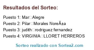 Lista de participantes: maria lopez uria, marimar carrasco jimenez, Sonia MartÃnez Jiménez, JAIME GARCIA-BERNARDO MARTINEZ, VIRGINIA LLORET HERREROS, Noelia Navarro Sánchez, Eva Gutierrez, Clara MartÃn GarcÃa, maria del prado gutiérrez rey, Arantxa Cañada, Lina Calderon, vanessa caro serrano, Nuria León Juanes, Ana Maria Santiago Gonzalez, Paloma Sánchez Morales, Sandra falo, Genisa Lorenzo, Susana Tejon Vedia, silvia martinez-hidalgo diaz, Rosa Fernández Cuadrado, Cesar Diaz Fdez-Cañaveral, luis ahijado castaño, Isabel Córdoba Ruiz, Beatriz Fernández Sanz, José Manuel Pérez MartÃnez, Carla Lopez-Dufour Lopez, Virginia Merenciano Romero, Aurora Rey Fernández, Miguel Hurtado GarcÃa, eva molto, Lorena Tejero, cristina Garcia Gomez, rosario gomez tena, Alba Moreno espada, Carmen MartÃn sierra, Laura Sanz, Sandra MarÃa Nistal Blanco, Susana Rey, Miriam Gutiérrez Fernández, Mj Baratas del Pozo, Carmen Sánchez Boluda, Alejandra MarÃn Mateos, Mayte Santiago, beatriz gil lopez, laura bobito, gema irala martinez, LIDIA NIETO SÃNCHEZ, sonia diaz martin, Jesus Martin libran, Andrés Relaño caro, Begoña Barrero Salido, Mercedes Palmero Lopez, Alberto Manzanares Briega, MarÃa Soledad MartÃn Oporto, Almudena Moraleda Escribano, carolina garcia, urban_mon Mon, Celia Pérez Fernández, Laura Canseco Gimeno, Asuncion Merino, MarÃa Antonia Salinas GarcÃa, Beatriz MarÃa DÃaz Puente, Ana GARCIA, Rebeca Rodriguez, Leticia Vega Martin, Palmira Rodriguez Menendez, Sara Alcalá López, Eva Correa Minguez, Marta de Frutos Granda, Angela Sanz Arranz, ana fraile garcia, Emilia Campo Moreno, Vanessa Fdez Toledano, mercedes Gonzalez POZUELO, Marta Sacristán Calvo, Eva Casado Romero, Cayetana Fernandez, Begoña garcia sanchez, OLVIDO MARTÃN LÓPEZ, Belén Franco de Vicente, CAROLINA DIAZ, ISABEL FERNANDEZ FERRERO, Irene Cid Clarós, Enrique Cuesta Morales, Isabel Clarós de Felipe, Jose Luis Cid Mira, reyes plaza sanchez, Miriam GARCIA MENDOZA, Elena Del Valle Baz, Ruth RodrÃguez Berlanas, Susana Lopez Herraiz, Vanesa Lorenzo Vivas, NATALIA MARTINEZ NAVAS, susana nucete pascual, MarÃa de Pablos Martin, sonia albert aguado, eperez , luismanuel , mestherperez , Marina Moreno Algarra, Elena Lopez Sanchez, Francisco Javier Paulino Franco, Dolores Figueroa, Rosa González, judith rodriguez fernandez, Reyes gomez estevez, Ana Garcia Gomez, Vanesa Sebestyen Rubio, Pilar Morales Noreña, irene soriano, esther ibáñez, Carolina Montealegre Andrade, Gema Ramos Serrano, Gustavo Gracia Sánchez, Silvia Cuesta Martin, Eva Fernandez Lopez, MARIA JESUS RABOSO ARANDA, Ana Rodriguez, Jimena Riveros López, Gema Arroyo Bravo, ANGELA DE CASTRO MORENO, Lourdes Soto, ana haldon delgado, Javier RodrÃguez DÃaz, miriam salmeron moran, teresa roiz, Celia Pallejá López, ana pardo, Maribel Espinosa Rodriguez, Manuel Alonso GarcÃa, Maite S. , Leticia San José Viguria, SONIA ARROYO, Teresa Zazo, ESTHER ROMERO FERNANDEZ, I., M., Elisa Rodriguez, Abraham GarcÃa Gutiérrez, Virginia Arroyo Guijarro, Ana Sanchez Santos, ana ruiz, CONCEPCION TRUJILLO CARMONA, Sofia Chao Oreja, Mª LUZ NAVARRO GONZALEZ, Mar Alegre, Mercedes Copano Enrich, MONICA zamorano bartolome, Jesus Sanchez Aguilar, DIANA FAYOS, PAZ PALOMO SANCHEZ, paloma rizaldos perez, Beatriz Gómez Beltrán, Rocio Diaz Ruiz, MARIA JOSE SANCHEZ RIVERA, Conchi Bueno López, ana cristina chávez escobar, Esther Ramiro Rios, Gema Peláez, cristina garcia olivares, Natalia sanz, MarÃa Carmen Gutiérrez Navarrete, YENNY REYES, clara Gutiérrez, YOLANDA FERNANDEZ BALLESTEROS, Rosi Tejera Jiménez, rosario benito, guadalupe sanchez trevejo, Elisa Segura Pérez, Diego Martin Martinez, Tatiana Castilla López, María Alcántara, Isabel Alcántara, mari carmen muñoz paniagua, Luis Martín Moreno, Raquel Rodriguez Delgado, Cristina Torres, Isabel Fernández, Vanesa Cano, alicia figueroa, Beatriz , paqui rebollo cicuendez, Raquel Jimenez, Susana de la Rubia, javier sedano, javier sedano castro, Elena Chico, sara quiles parra, carmen martin sierra, vanessa maria martin sanchez, Violeta García rosado, Cristina Segura Alonso, noelia dorado , belengp66 , amoraruiz , avinuelas , susanamercado , mariesmar , carmen serrano , eva lopez-sanz, Eva Santos Montero, Esther Ortega Alonso, Esmeralda Huertes Fraile, ANTONIO TAPIA GARCIA, Virginia , Mª Luz NAVARRO GONZALEZ, MANUELA SAN CRISTOBAL, EVA MORCUENDE, Paloma Hernández, Pilar Blanquer, Susana , Manuela rodríguez Herrera, Amelie , Ana Isabel Rodríguez Tena, RAQUEL LAZARO PUJOL, Maria Dulas, alberto ortega de la iglesia, natalia , EVA MONTERO, Mar Gómez, Sheilla Diaz, ESther Moreno, Ana Garcia, Vanesa rodriguez de francisco, José Julián Plaza Navarro, mari paz ortega garcia, Leticia Martinez Santuario, Beatriz canizo, CARMEN CULLA AZNAR, Rosa Sanchez Herran, JUAN JOSE CAÑADA PEREZ, maribel castaño, Vicente , Carmen Varas, belen gomez de la llamosa, Cristina Hernandez ruano, J Carlos Patiño Moreno, Maria Jesus lopez Mateo, Inna Gabman, Patricia Gómez Seago, fco javier sedano castro, cristinajisan , elapsus.