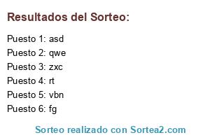 Lista de participantes: qwe(2 participaciones), asd, zxc, rt, fg, vbn.