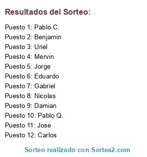 Lista de participantes: Gabriel, Mervin, Damian, Pablo C., Pablo Q., Banjamin, Felipe, Jose, Nicolas, Uriel G., Uriel V., Eduardo, Carlos, Jorge, Bastian.