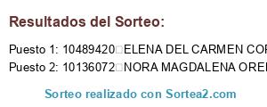 - Premio Extra: 10136072 NORA MAGDALENA ORELLANA ORELLANA
