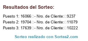 - 3er. Premio $500: 17639 - Nro. de Cliente: 10222