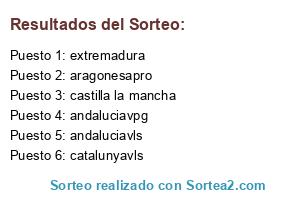 Lista de participantes: andaluciavls, catalunyavls, aragonesapro, extremadura, andaluciavpg, castilla la mancha.